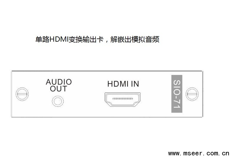 SIO-71 HDMI單通道變換輸出卡,配合SMD主機(jī)使用,采用獨(dú)立板卡設(shè)計(jì),每塊卡支持1路HDMI輸出,解嵌出模擬音頻,支持最高1920x1200P60的數(shù)字高清圖像傳輸.