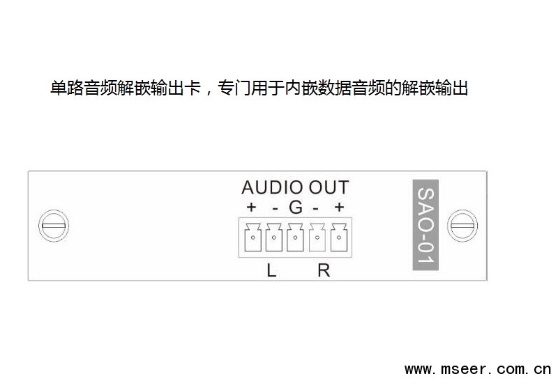 SAO-01 Audio單通道解嵌輸出卡,配合SMD主機使用,采用獨立板卡設計,每塊卡支持1路雙聲道平衡Audio輸出,專門用于內嵌數據音頻的解嵌輸出.