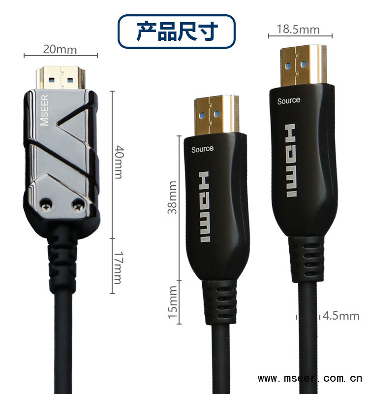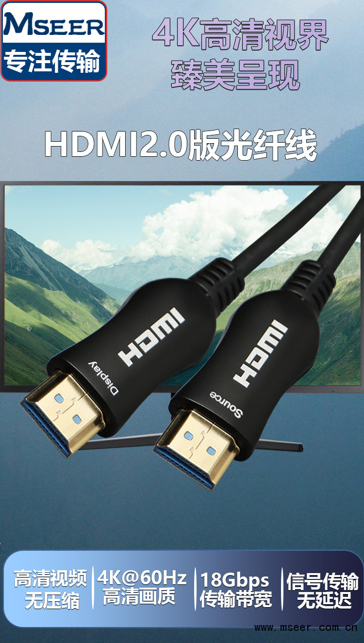 HDMI光纖符合2.0規范,傳輸速率可達到18G,可以支持 4K@60Hz畫質以及 4:4:4傳輸效果;向下兼容2K&1080P&3D等畫質。信號衰減小于0.0035db/米,突破傳統銅纜傳輸距離受限制的瓶頸,可以實現150米的遠距離傳輸。