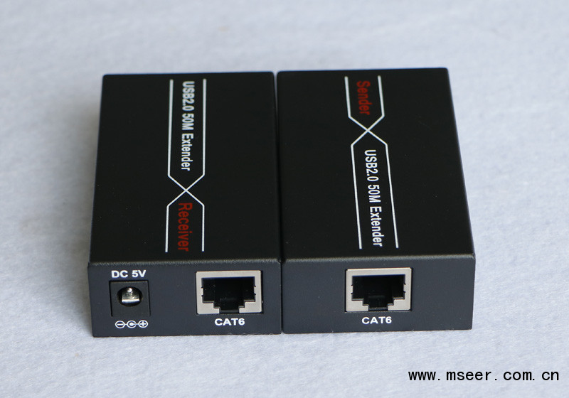 USB2.0延長器包括本地發送端(Transfer)與接收端(Receiver),可以通過單根CAT5/5e/6網線,將電腦的USB信號延長50米。傳輸速率高達480Mbps。該產品廣泛應用于電腦長距離連接打印機、掃描儀、鍵盤、鼠標 和U盤等設備。即插即用,無需驅動和安裝設置。